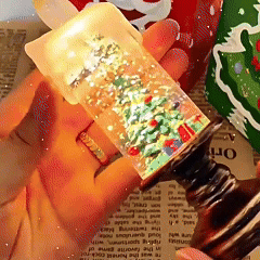 The central landscape of this sparkling snow globe is composed of images of Santa Claus, Christmas trees, snowmen, etc. When turned on, each snowflake sparkles with rainbow colors, making you smile and warming your heart.
