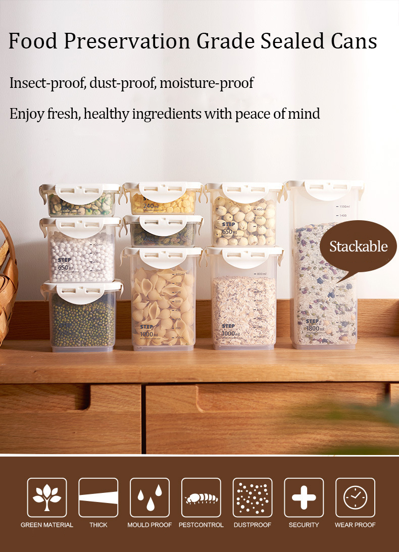 Seal ring + buckle, more solid, good sealing effect, prevent mold and insects, lasting freshness.