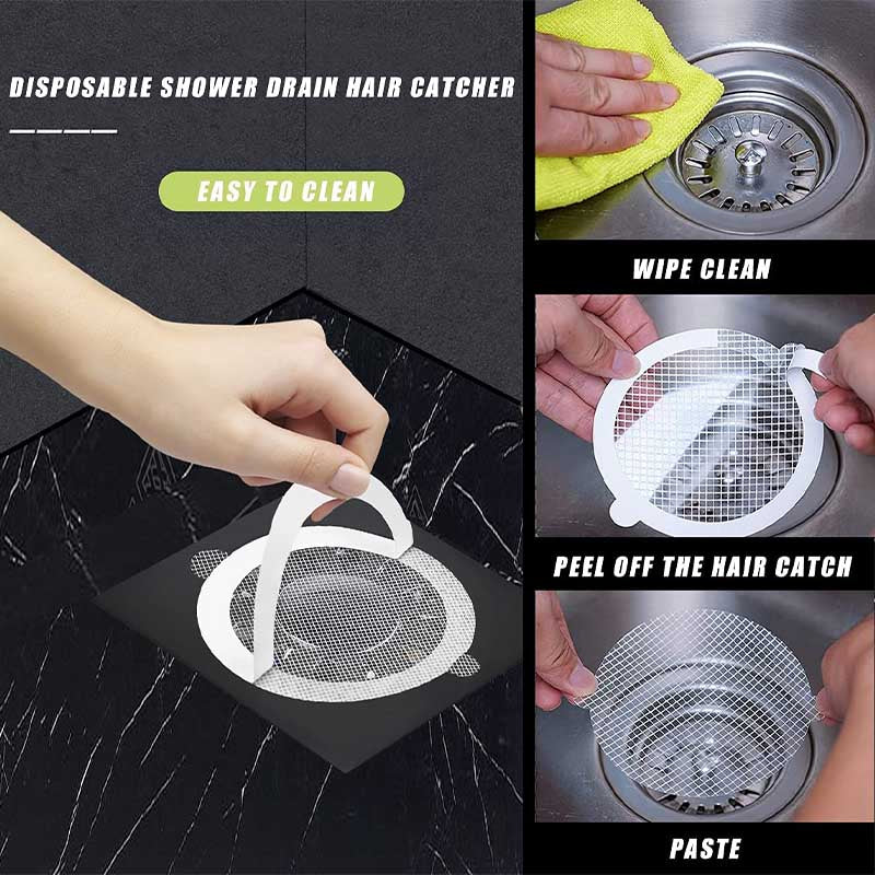 - Waterproof Adhesive: Strong waterproof adhesive can make the disposable drain hair catcher effective adhesion to drain . The product sticks very well to any types of surface whether it is metal, plastic or tile, it will not be washed away by water.