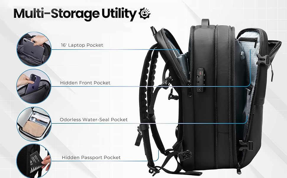 Versatile and Organized: Equipped with multiple max multifunctional large compartments and wet/dry pockets, this backpack keeps your gear organized and separates wet items from dry ones. Ideal for college, weekend airbag getaways, vacpack carry-on luggage, or professional use.